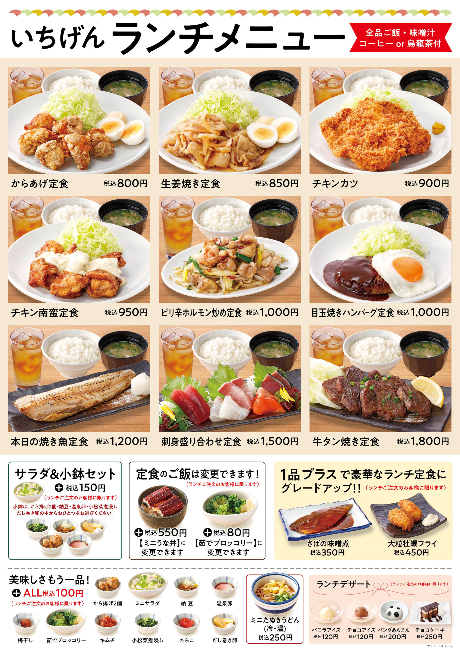 全ランチメニューにコーヒー(ホット/アイス)またはウーロン茶付